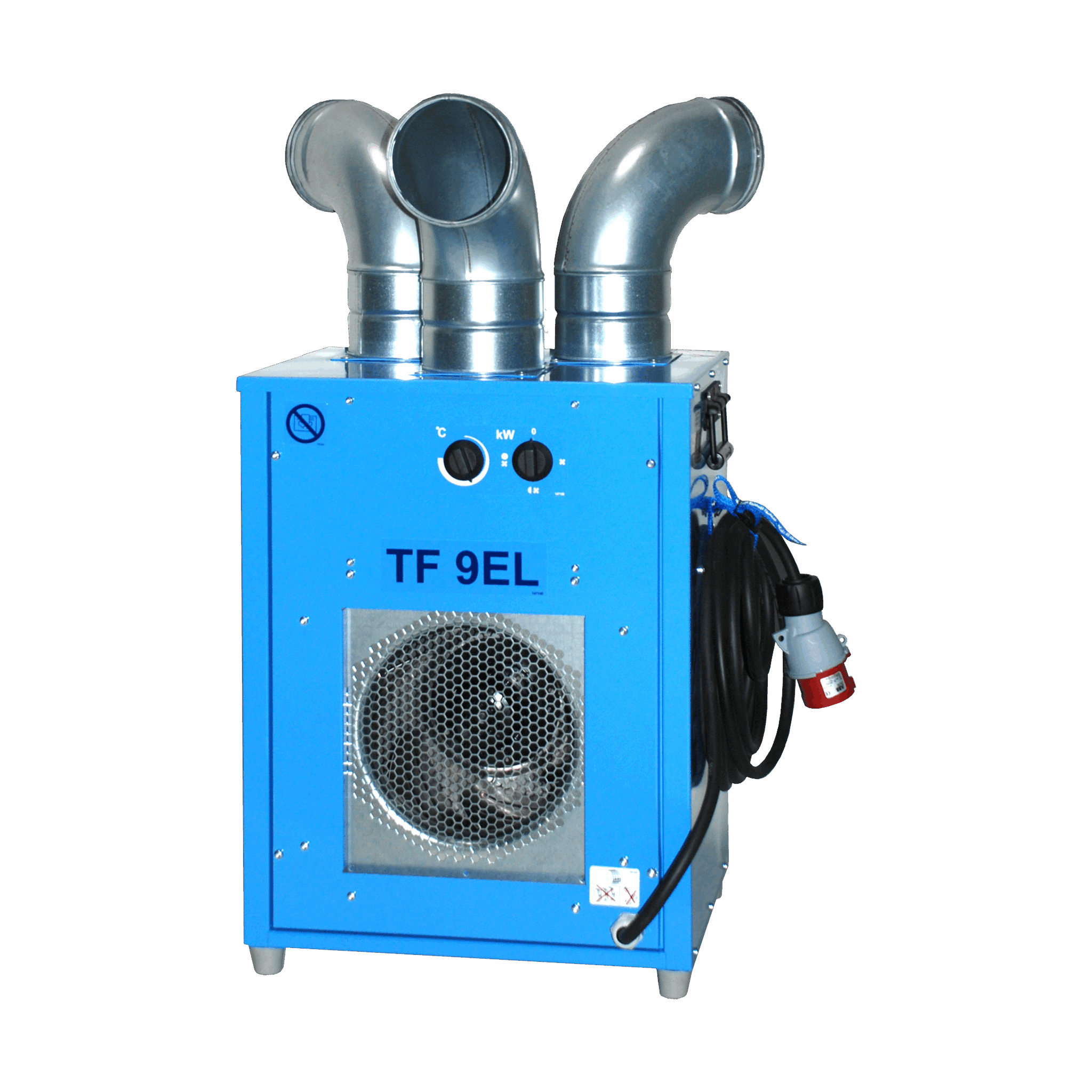 TF 9EL er utviklet for å varme og tørke mindre rom. Maskinen har et svært kompakt chassis for enkel plassering på trange steder som for eksempel trapper, eventtelt og leiligheter. Maskinen er utstyrt med stussplate, med den kan du endre luftfordeling og luftstrøm. Hvis ønskelig kan maskinen kompletteres med hjul. Maskinen kan stå på gulvet eller monteres på vegg (veggfeste medfølger). Maskinen har en enkel oppbygning som forenkler rengjøring og vedlikehold. Alt det elektriske er montert bak en dør med fire skruer, noe som gjør det enkelt å rengjøre maskinen.